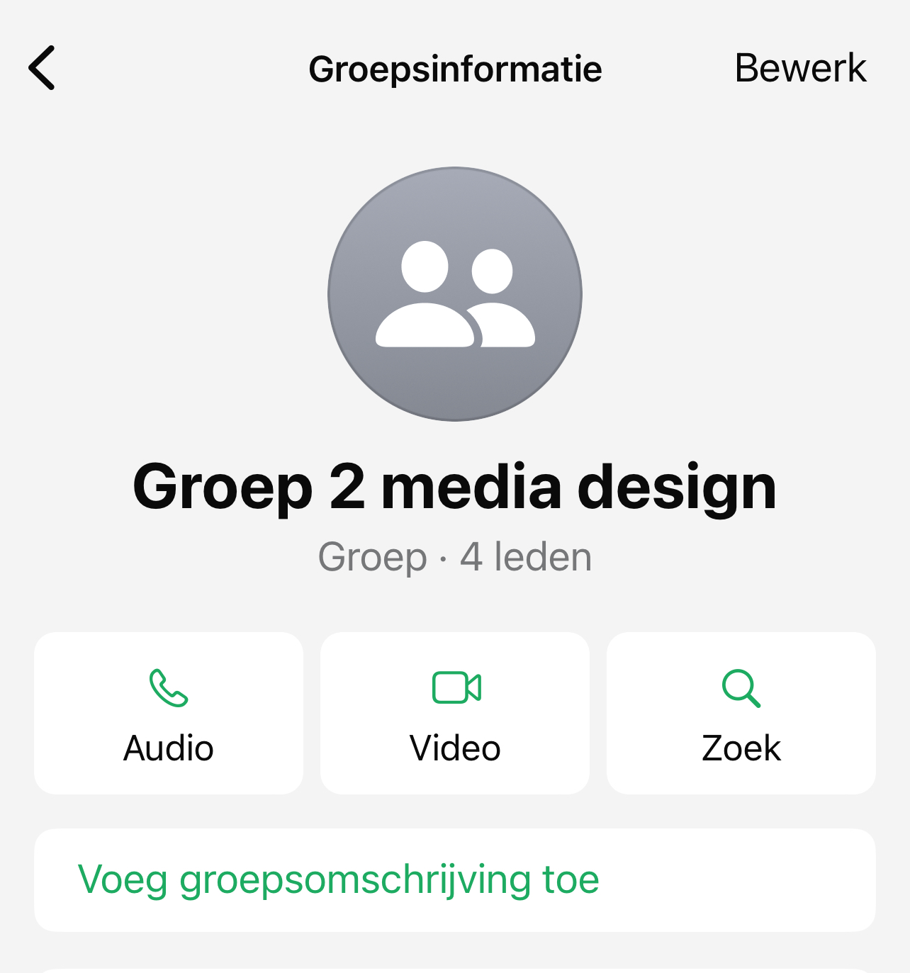 We hebben een WhatsApp-groep gemaakt om met elkaar te praten over school en ons project.
